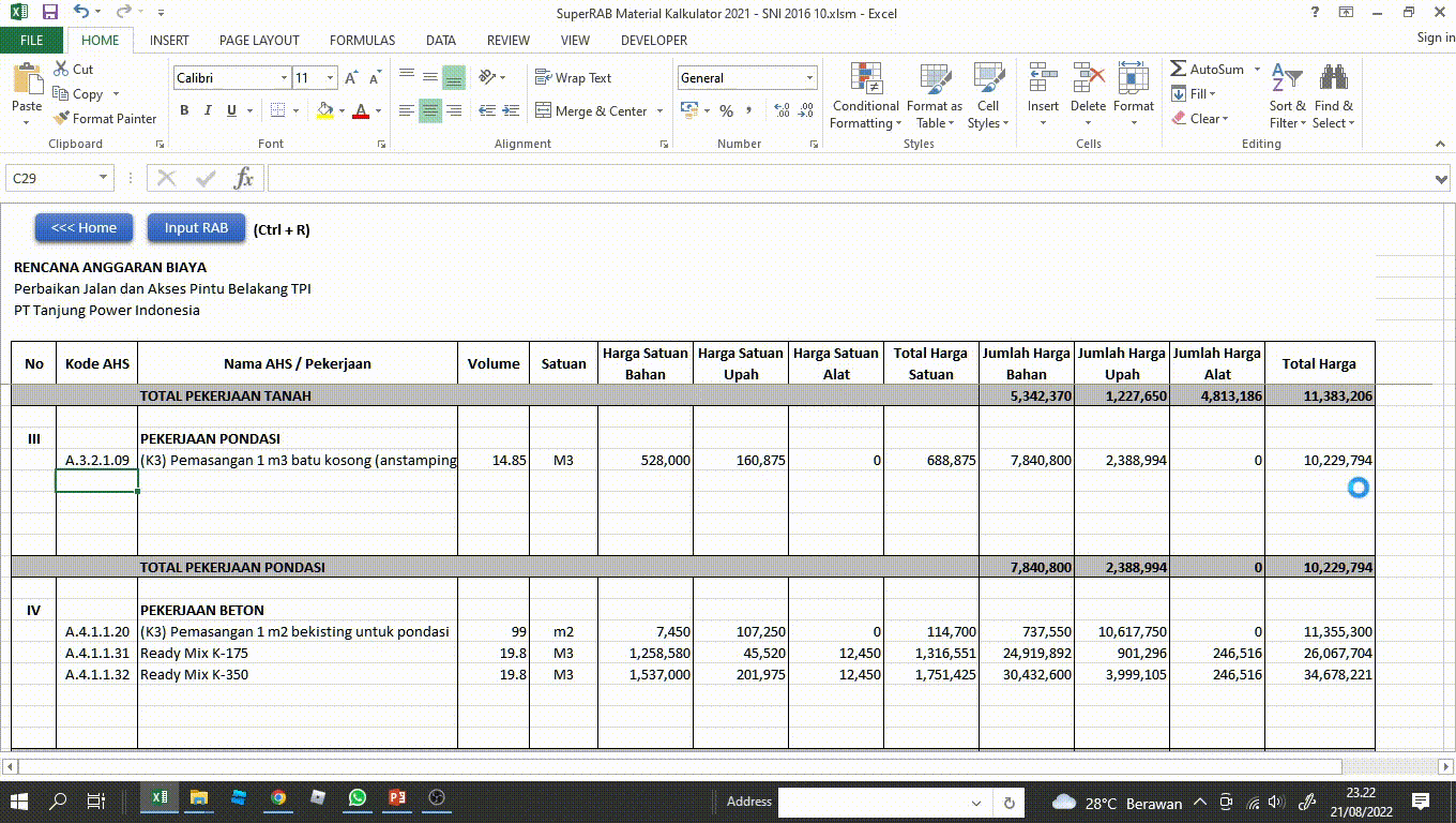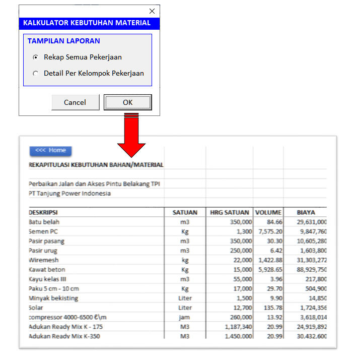 Cukup 1 Klik Untuk Menjalankan Kalkulator Material / Upah
